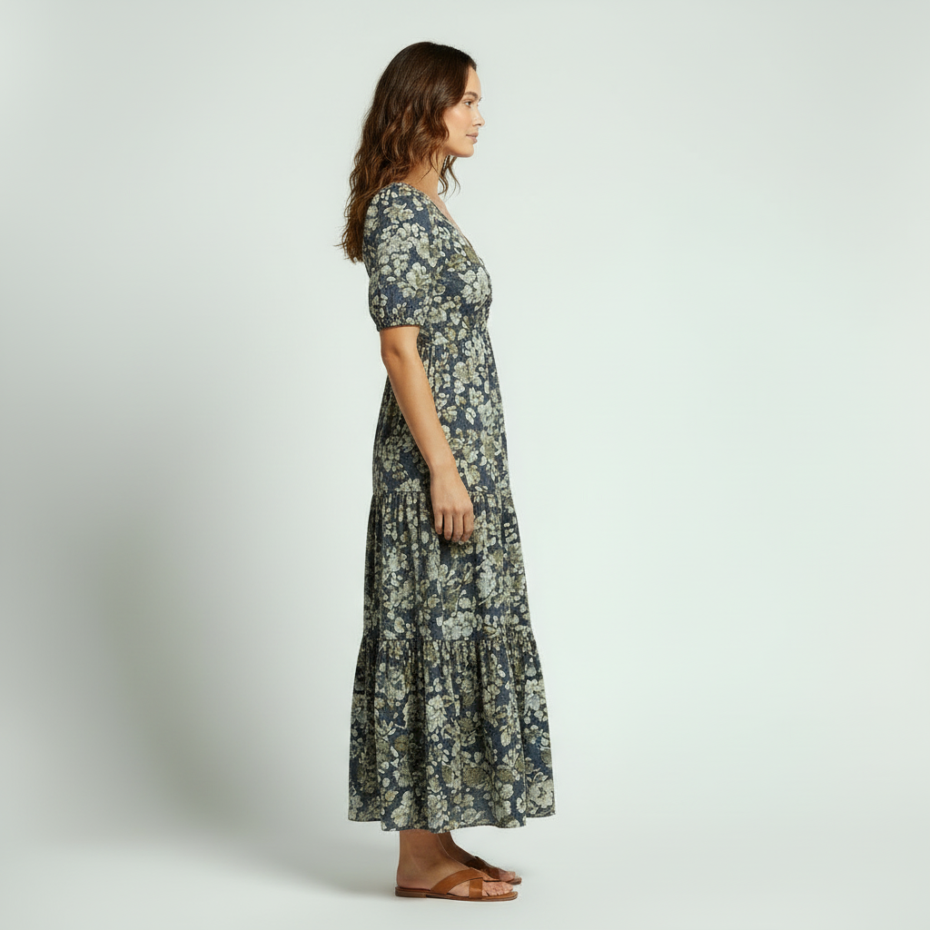 This floral maxi dress blends romantic movement with everyday comfort, giving you a timeless fashion silhouette that works for brunch, strolls, or warm-weather outings.